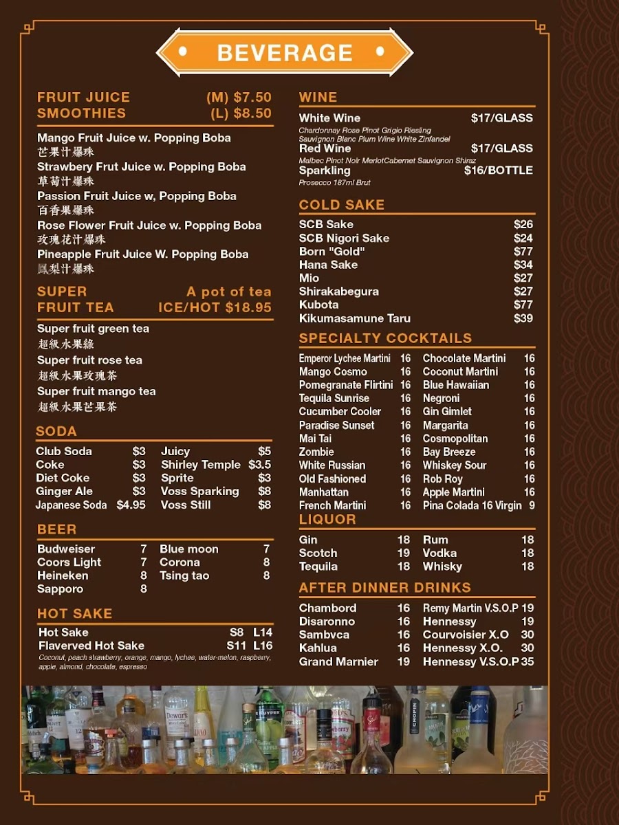 Light but satisfying options like Hot and Sour Soup or Scallion Pancakes work well for a quick bite, while heartier plates such as Honey Walnut Shrimp or Royal Peking Roast Duck make for a more leisurely meal. The inclusion of lunch combos, sushi and sashimi sets, and specialty rolls provides convenient choices during the daytime, while the cocktail bar and bubble tea selections add a casual yet refined touch to the overall experience.